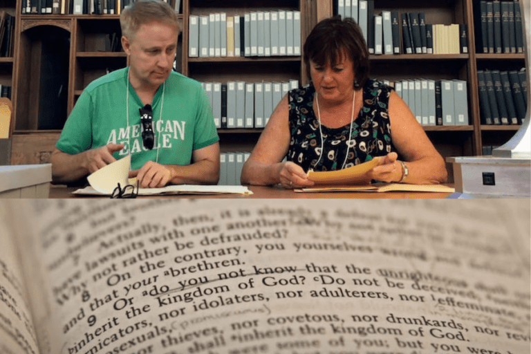 Author Kathy Baldock and Ed Oxford, a fan of Baldock’s work turned co-detective, are heads down in research mode at the Yale Sterling Memorial Library in New Haven, Connecticut. They’re deep in the archives, and when I say deep, I mean they’ve already gone through about 60,000 documents. The award-winning documentary 1946: the bad translation that changed culture can make even file browsing fascinating. They are looking for comments on why the word “homosexual” was added to the Bible.