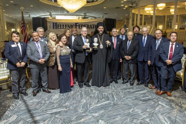 At the annual formal dinner of the Hellenic Federation of New Jersey, held at the luxurious event venue “The Graycliff” in the Moonachie region of New Jersey, Metropolitan of New Jersey Apostolos and eminent cardiologist Ilias Iliadis were honored for their contributions to the Greek community. and Hellenism. They received the “Megas Alexandros” and “Hippocrates” prizes respectively.