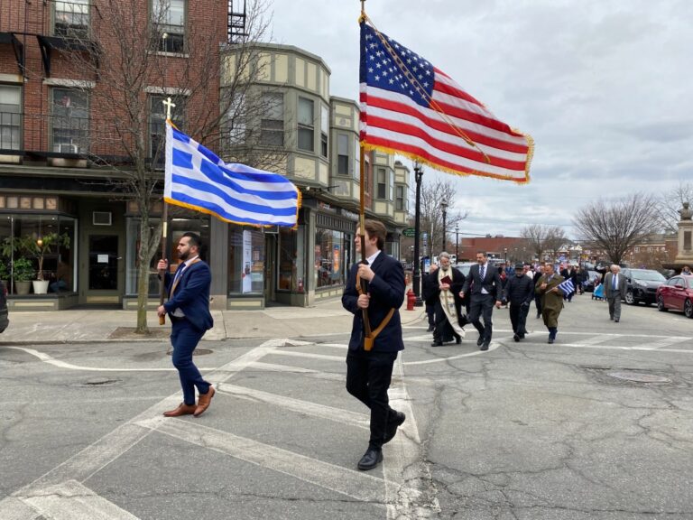 Area residents, clergy and officials gathered for a parade and Greek flag-raising ceremony at Lowell City Hall to celebrate Greek Independence Day on March 25.