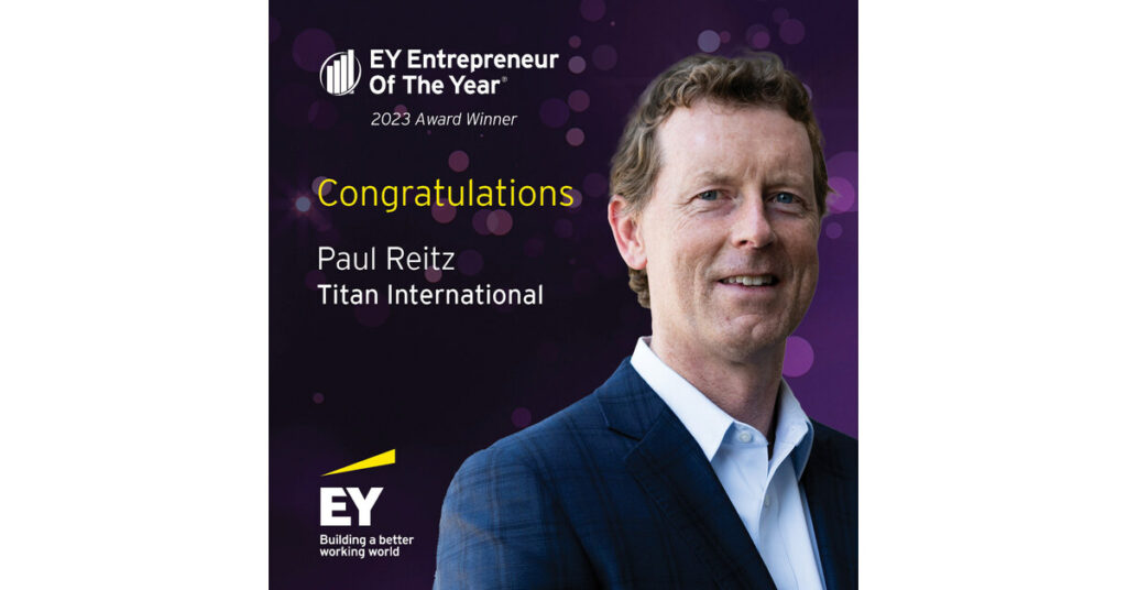 CHICAGO, June 26, 2023 /PRNewswire/ — Ernst & Young LLP (EY US) today announced that Paul ReitzCEO of Titan International, Inc. — maker of Titan Tires, Titan Wheels, Goodyear® Farm Tires and ITM Steel Undercarriage (Titan) – was named Entrepreneur of the Year® 2023 Midwest Award Winner. The Entrepreneur Of The Year Awards program is one of the most competitive awards for entrepreneurs and leaders of high-growth businesses.