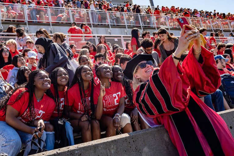 President Maurie McInnis presided over the freshman convocation Aug. 23 at Kenneth P. LaValle Stadium and the transfer student convocation Aug. 25 on the Staller Center main stage, noting that students are coming to Stony Brook.at a time of incredible excitement and promise.