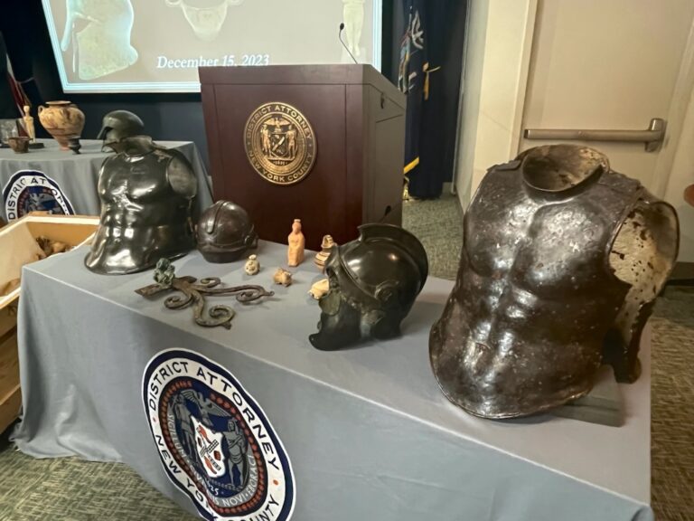 The antiquities, which also include breastplates, a Byzantine silver plate and a bronze chariot accessory, were recovered by Homeland Security Investigations, the investigative arm of the U.S. Department of Homeland Security, along with the U.S. Attorney’s Office. district of Manhattan, Alvin Bragg.